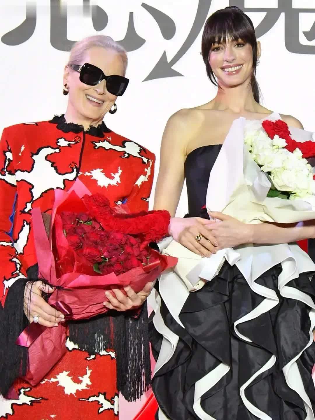 电影《穿普拉达的女王2》中国首映礼,梅姨和安妮海瑟薇也来了!不都说了外国人老的快吗?安妮海瑟薇和梅姨的状态还是那么好,两人都好像颜值回春了!两人为了这部电影看来要跑遍全球啊!已经出现在好几个国家了!一起来看看她们宣传电影时的穿搭吧!